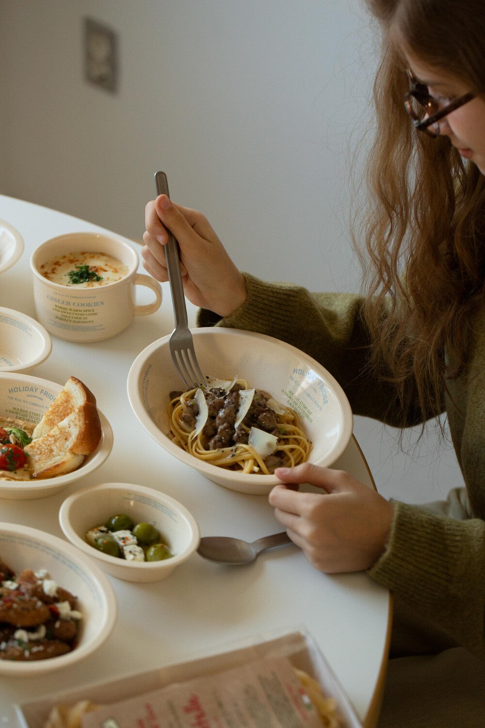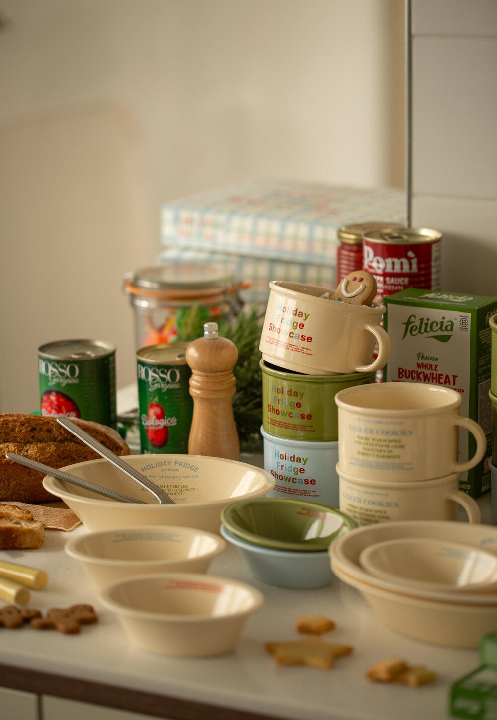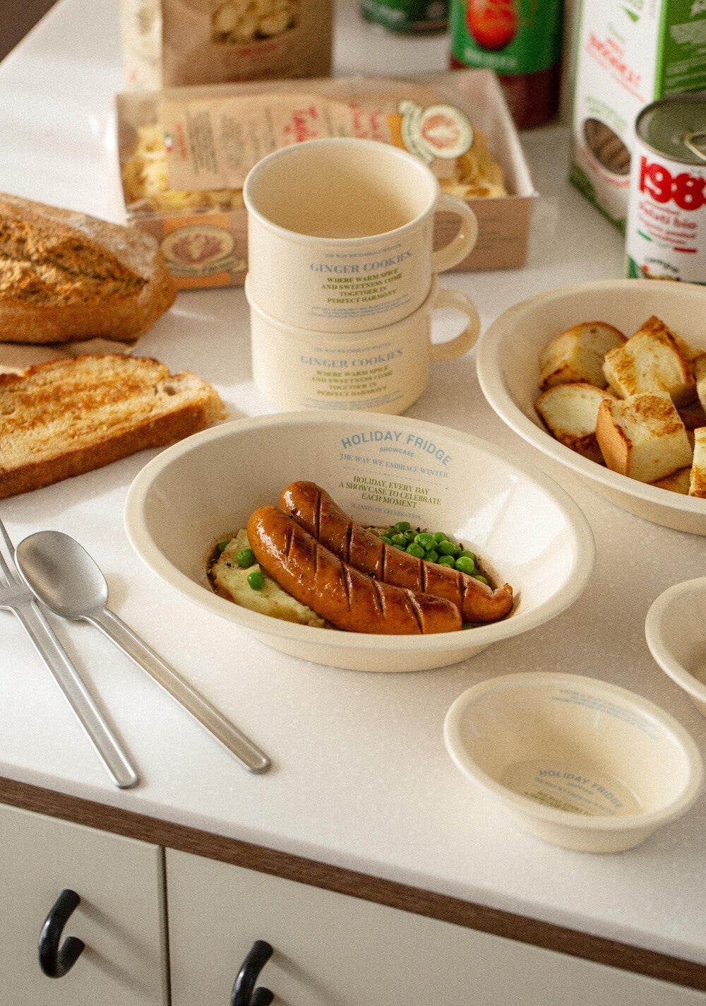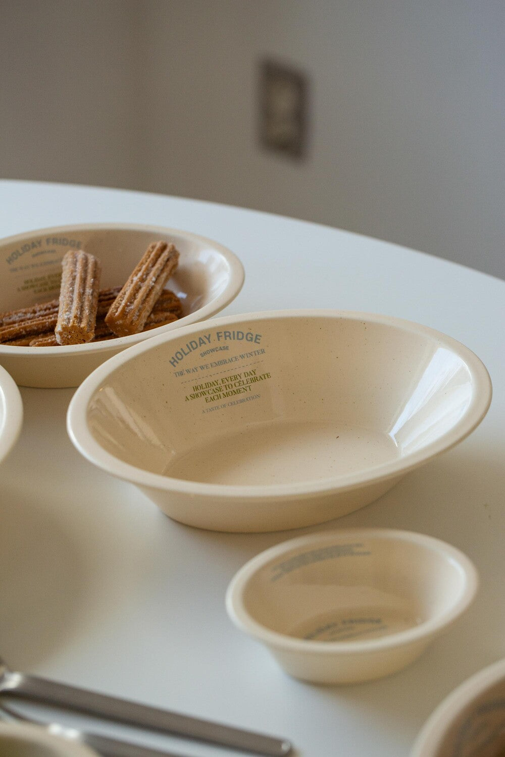 The butter-colored glaze is mixed with a semi-matte glaze, so scratches may occur when using a knife or other metal utensils.