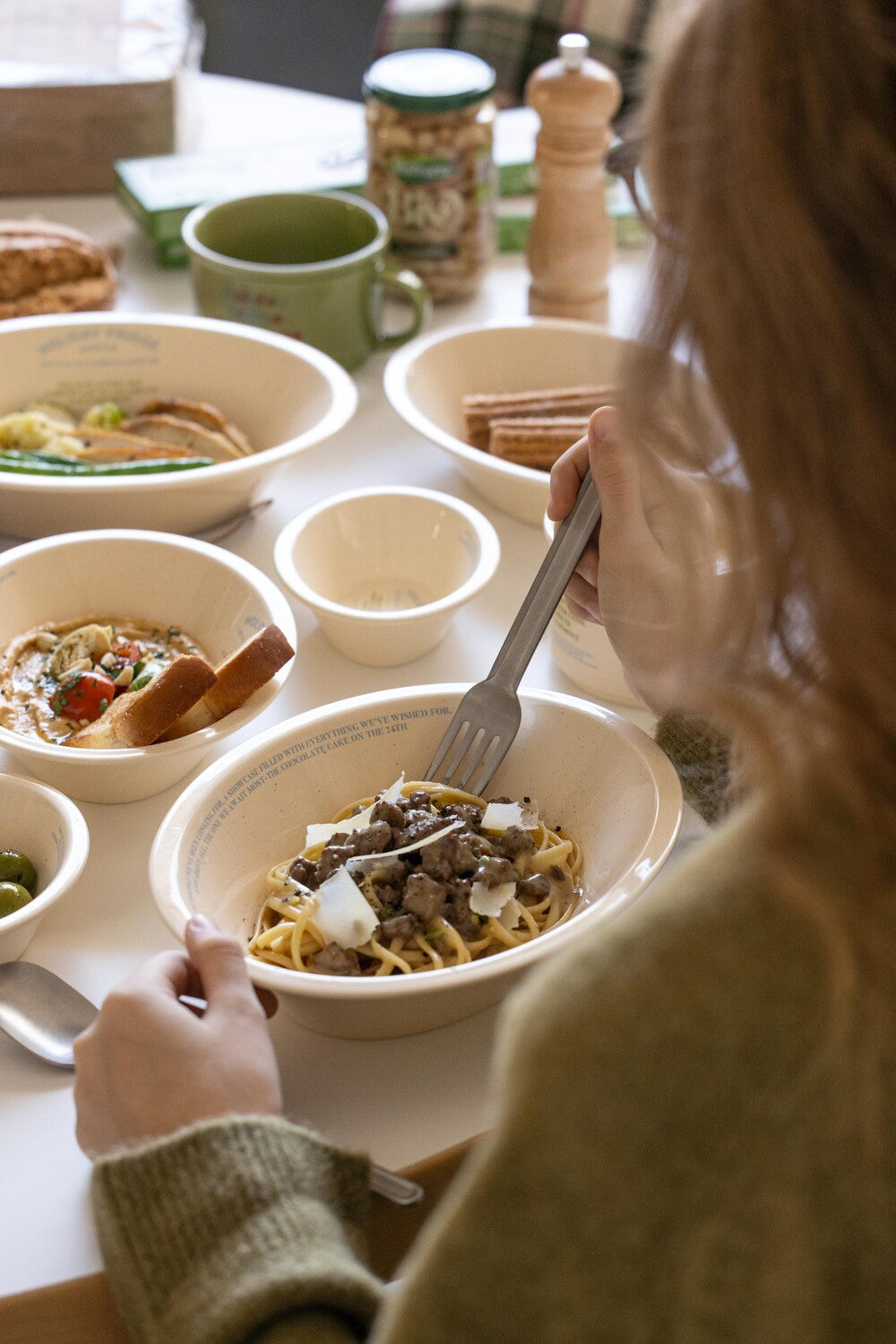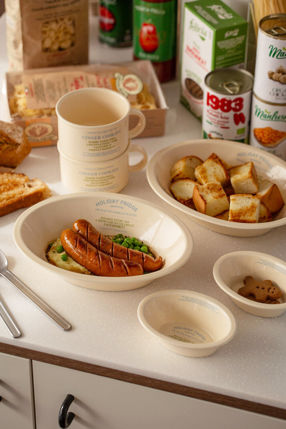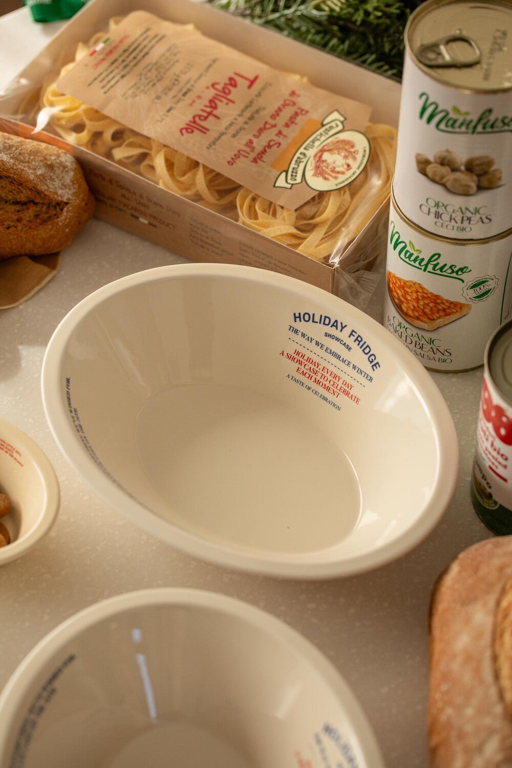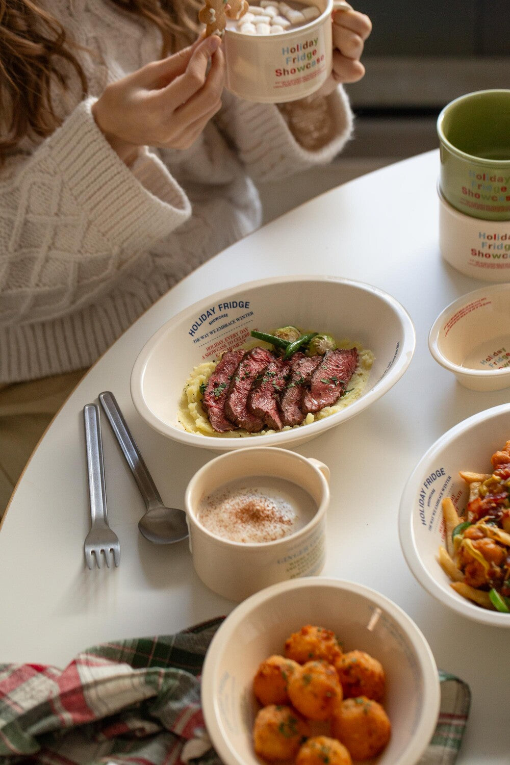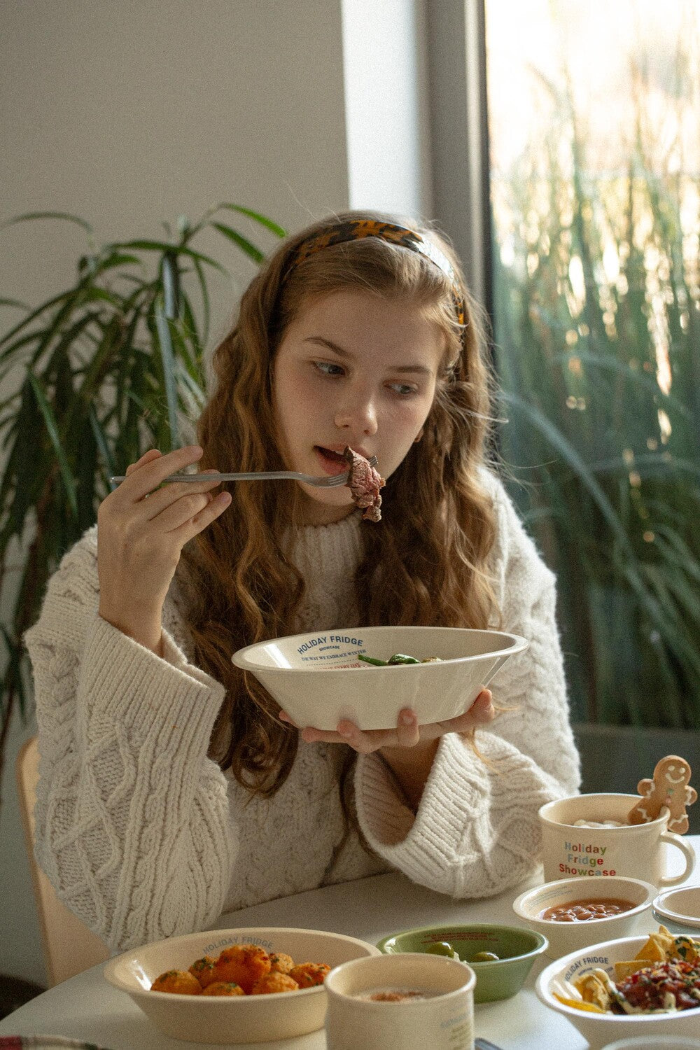 The butter-colored glaze is mixed with a semi-matte glaze, so scratches may occur when using a knife or other metal utensils.