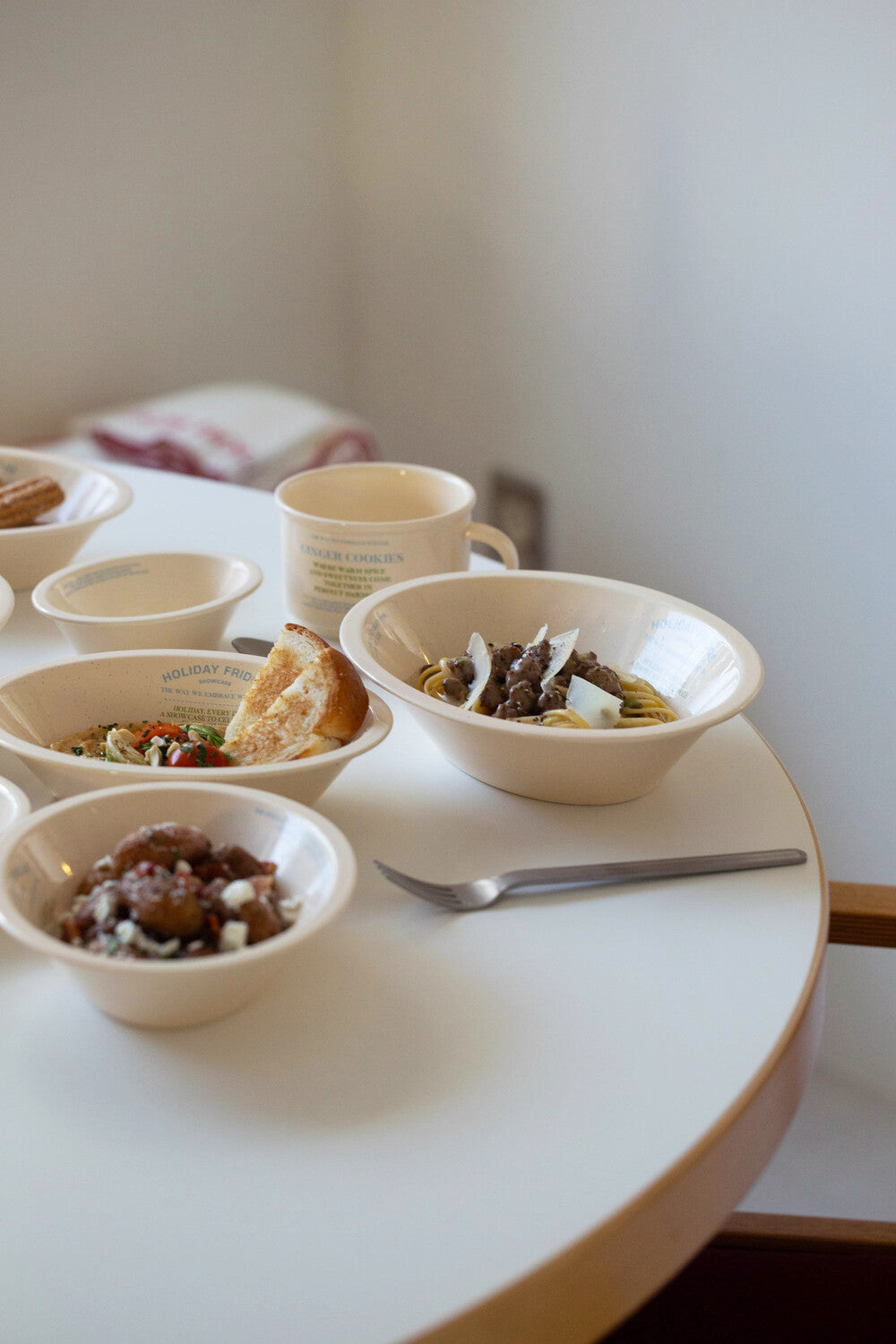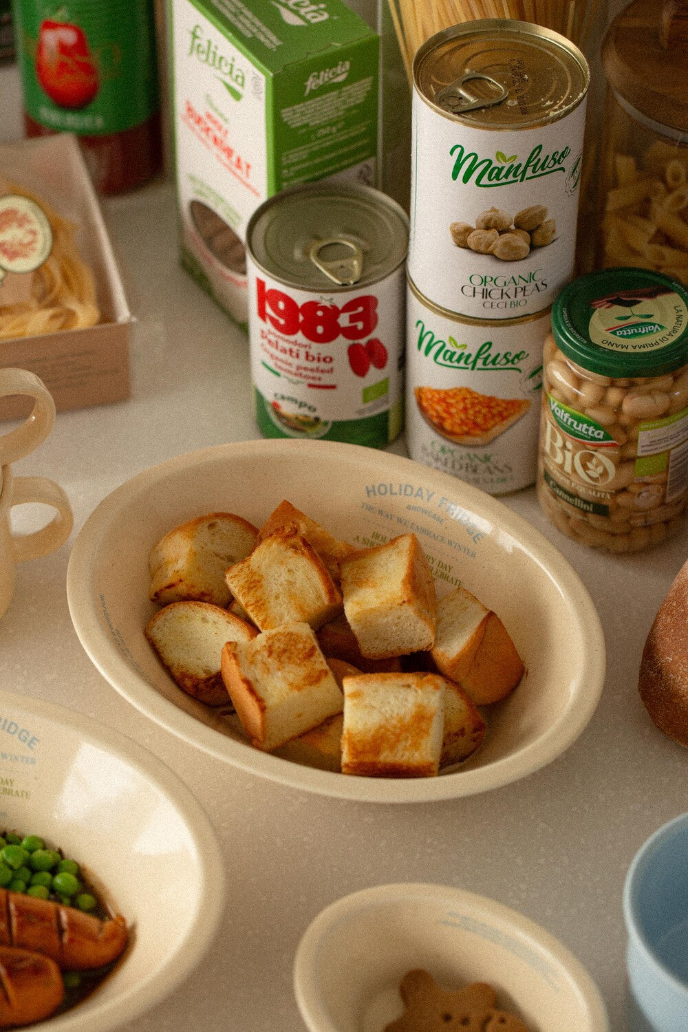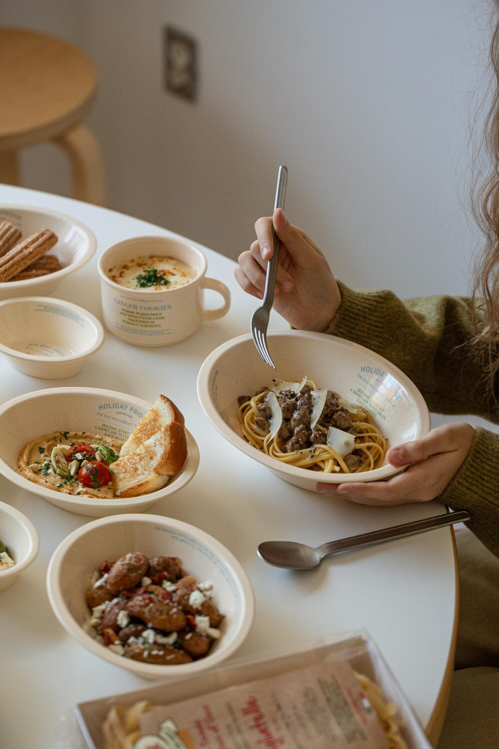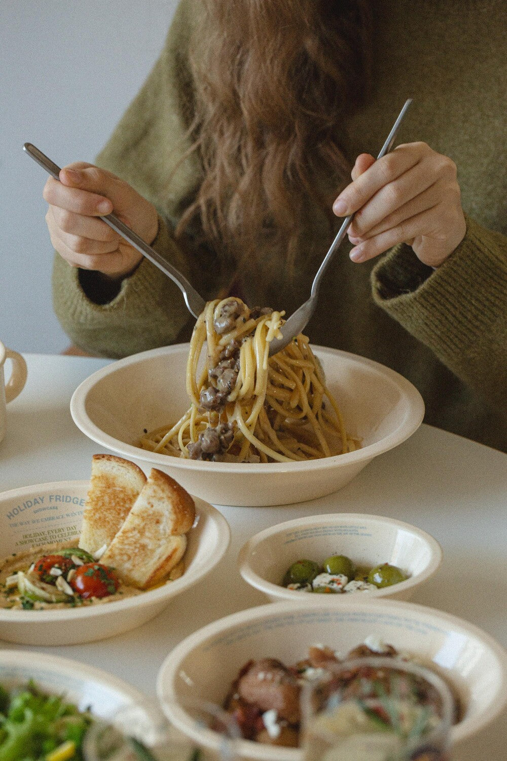 The butter-colored glaze is mixed with a semi-matte glaze, so scratches may occur when using a knife or other metal utensils.