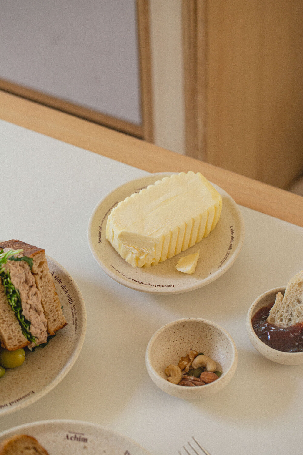 The butter-colored glaze is mixed with a semi-matte glaze, so scratches may occur when using a knife or other metal utensils.
